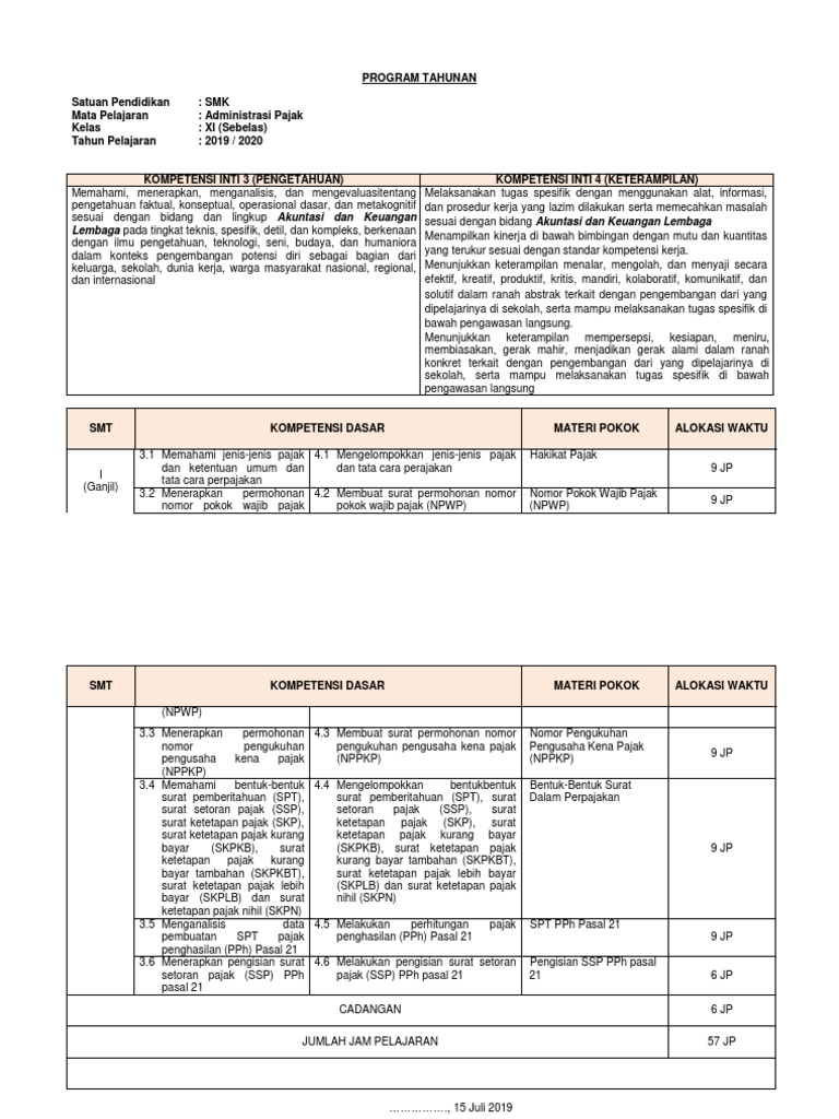 Silabus Smk Kelas Xi Sebelas Semester 1 Administrasi Pajak from image.slidesharecdn.com Yang teridiri dari 20 soal pilihan ganda dan 5 soal essay. Berikut ini materi perpajakan yang terdapat dapa mapel soal administrasi pajak, materi pajak ini dipelajari di kelas 11 semester ganjil dan genap untuk smk, soal administrasi pajak untuk jurusan akuntansi, soal berbasis akm smk untuk menumbuhkan kemampuan berfikir analis. 6.lampiran yang wajib dilampirkan oleh semua wajib pajak but (meskipun pajak tidak terutang) sesuai bentuk formulir lampiran khusus 6a/6b. Contoh soal administrasi keuangan kelas 11 semester 1. 150 soal pts prakarya dan kwu kelas 11 semester 1 kurikulum 2013. Mata pelajaran administrasi pajak untuk kelas xi tingkat smk semester genap ini memuat tentang materi pajak penghasila dan pph pasal 21.siswa diharapkan mampu memahami tentang pajak penghasilan yang dikenakan kepada orang pribadi maupun badan atas penghasilan yang diterimanya. Soal administrasi server kelas 11 dan jawabannya khoirul muna 2015 12 13t18 47 00 08 00 5 0. Demikian informasi tentang soal pat ukk sejarah.