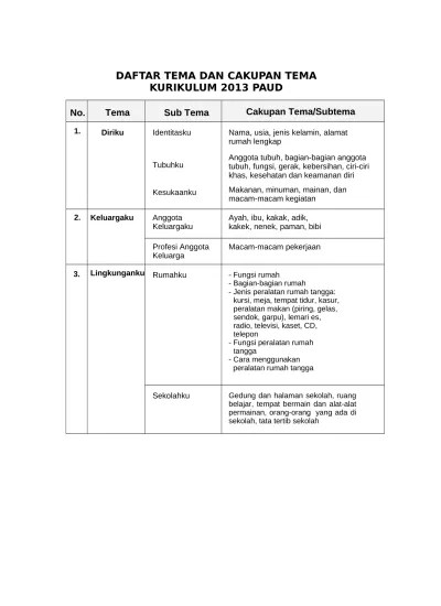 Hewan dan tumbuhan di lingkungan rumahku 2. Berikut daftar tema paud untuk rppm full selama satu semester ganjil dan genap yang. Daftar tema berisi sejumlah tema dalam setahun yang dibagi menjadi 2 semester. contoh rppm kel b minggu 6 tema keluargaku subtema anggota keluarga (1) baca juga : 34 295 13 rpph smt 1 kel a minggu 6.
